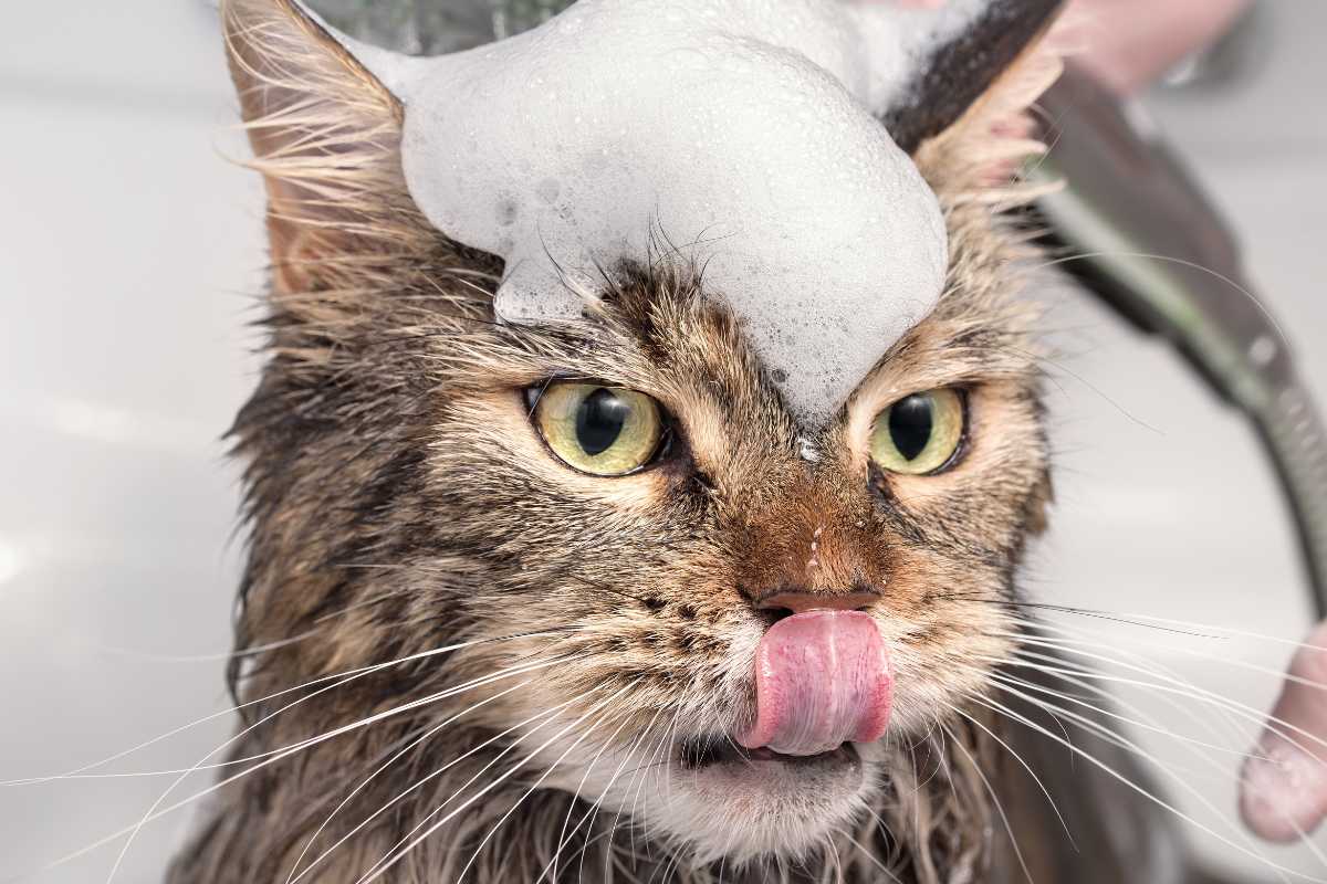 Once your cat is wet, it’s time to apply the shampoo. Use a small amount of cat-friendly shampoo and lather it gently into your cat’s fur.