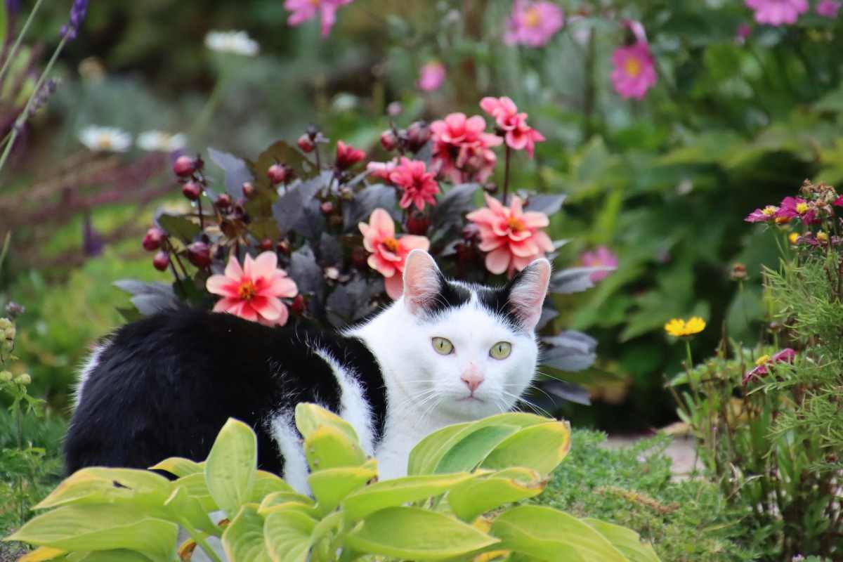 Create layers (low groundcovers, mid-height shrubs, a small trellis) so pets can peek, perch, and patrol.
